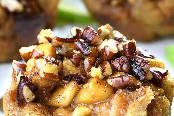 Top with apple filling and bake for 10 minutes. Remove from the oven and spoon pecan topping over each cup. Bake for 12-15 more minutes or until the edges have set and the tops are golden brown.